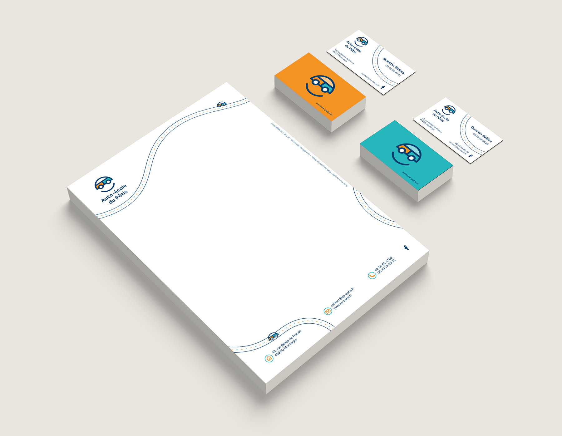Identité visuelle pour l'auto-école du Pâtis à Montargis.