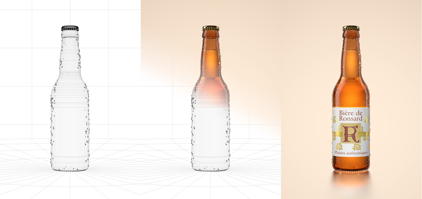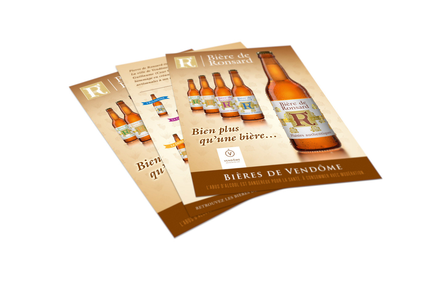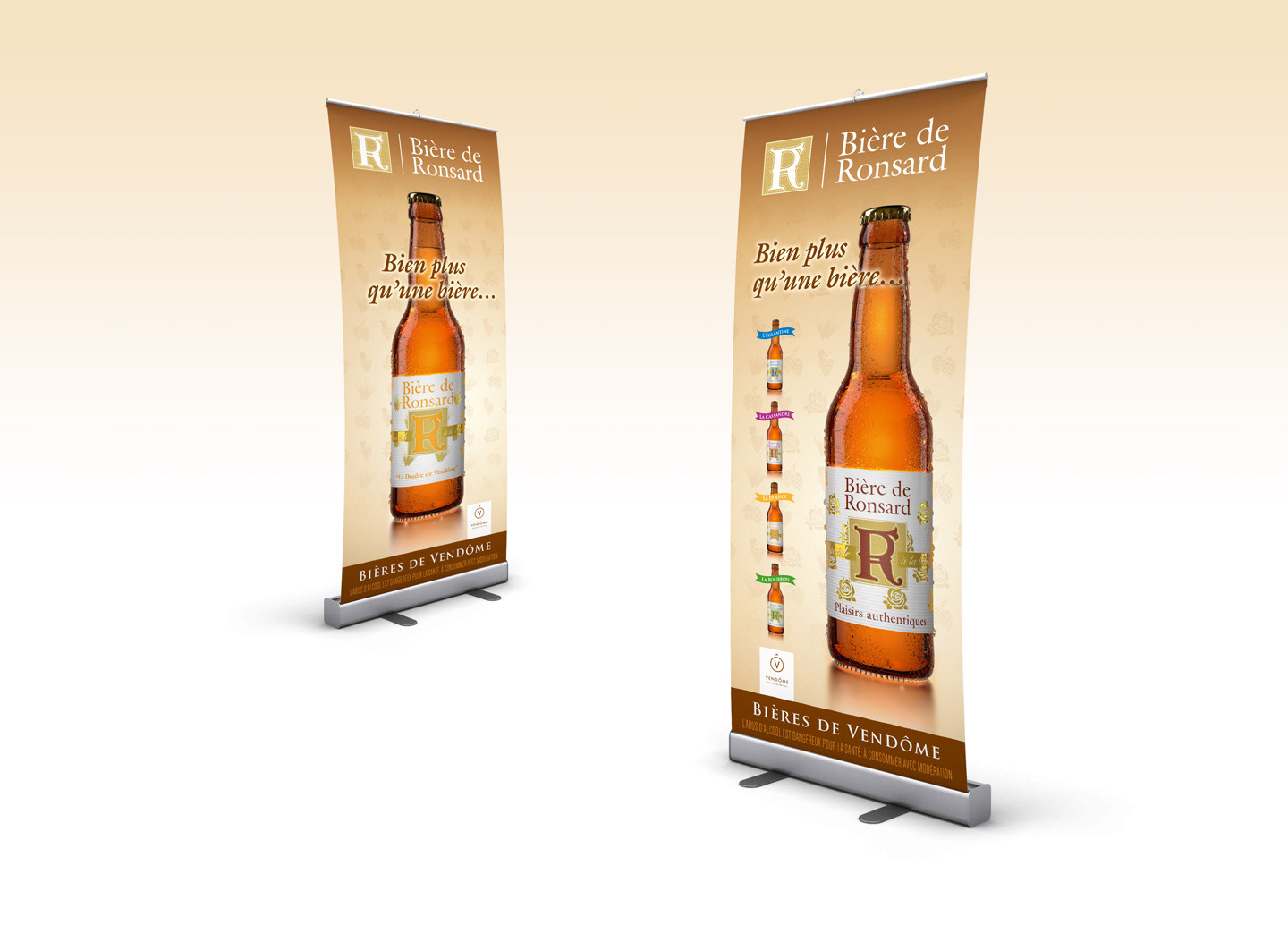 Modélisation 3D pour la Bière de Ronsard. Réalisation de flyers et de kakémonos.
