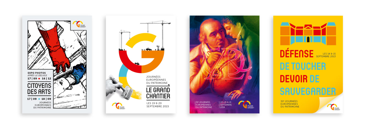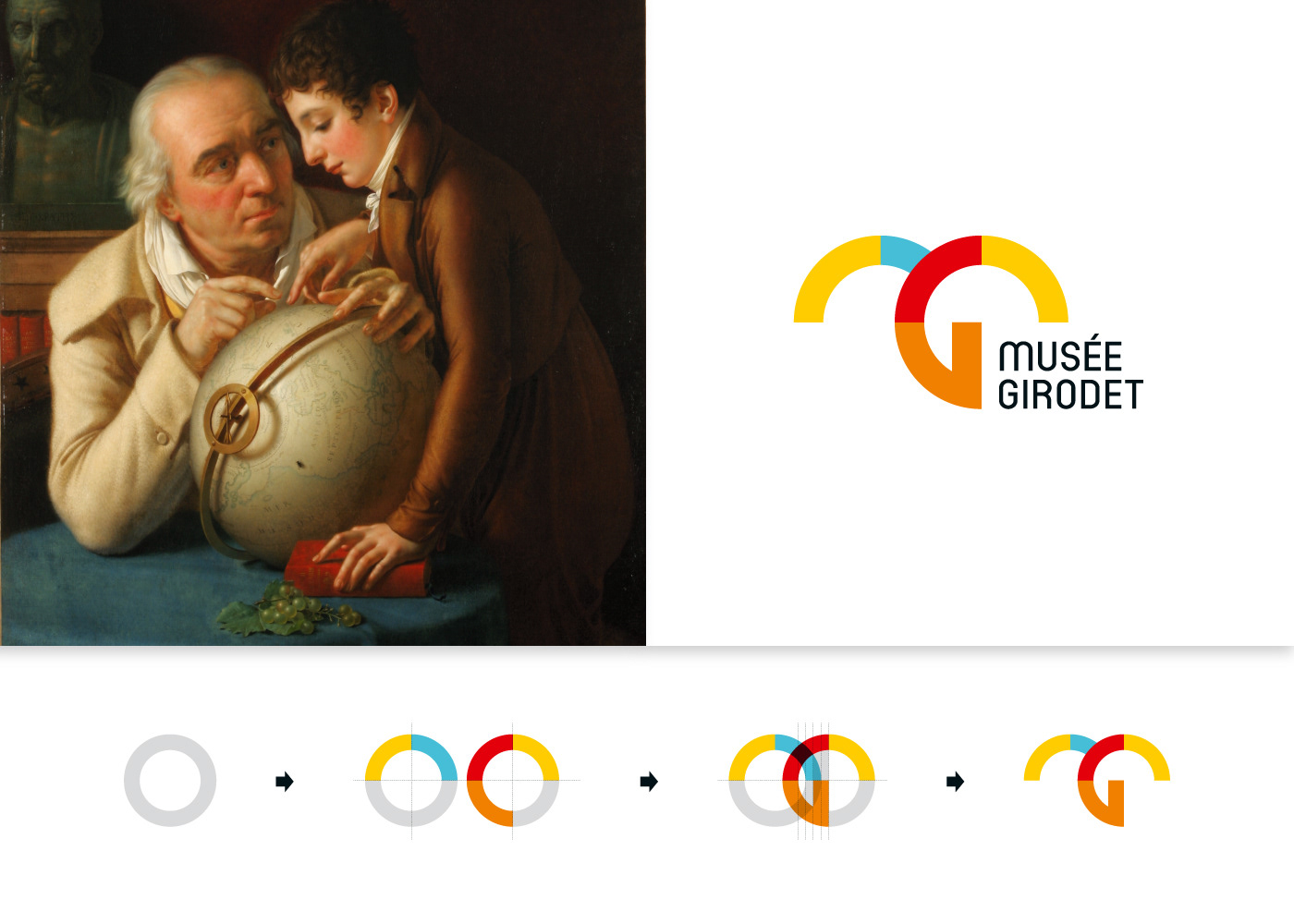 Réalisation de l'identité visuelle du musée, portée par un monogramme multicolore.