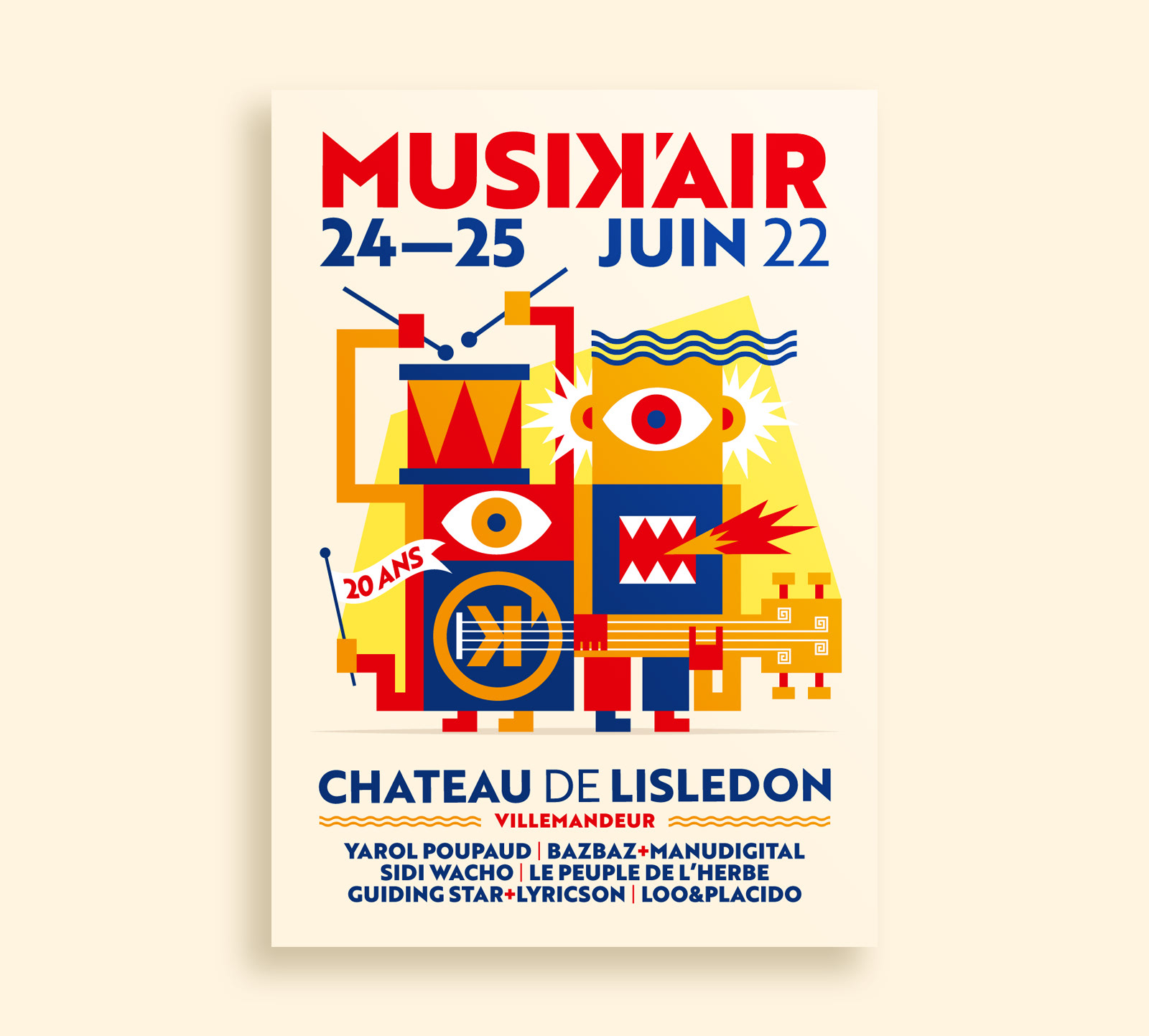 Illustration et réalisation des supports de communication du festival Musikair, qui fête des 20 ans cette année !