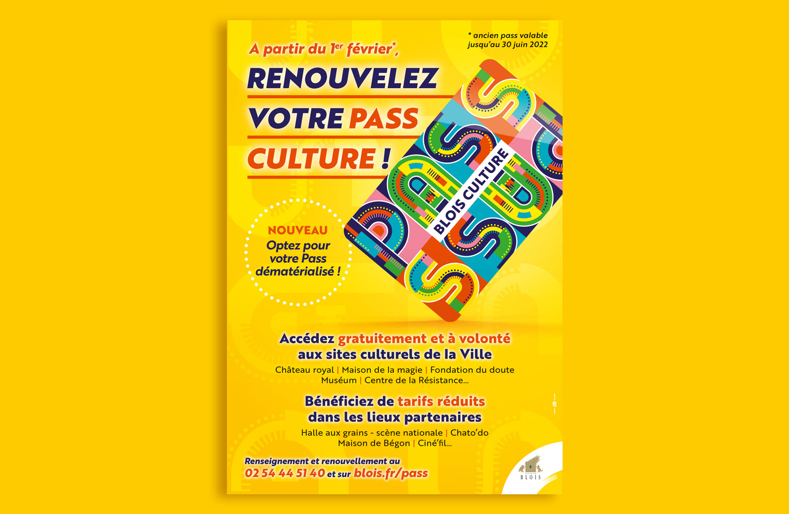 Design graphique du Pass Culture de la ville de Blois. Réalisation d'une petite animation et des supports de communication.