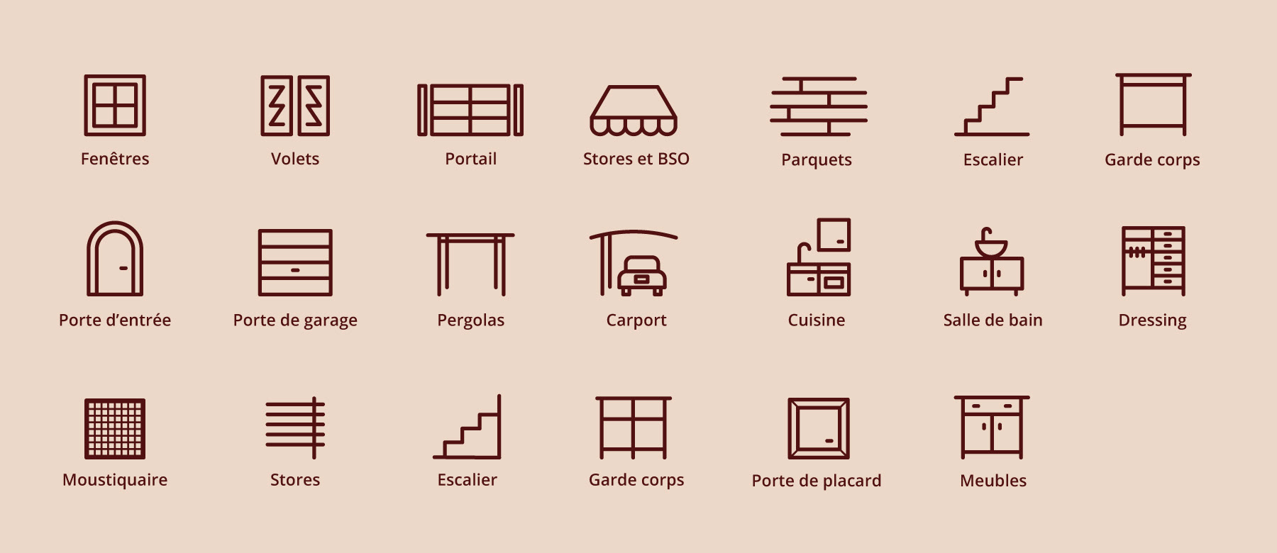 Création de pictogrammes pour un boucher traiteur et une entreprise de menuiserie.